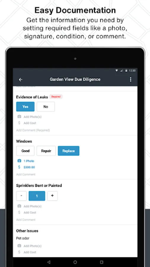 Easy Documentation: Get the information you need by setting required fields like a photo, signature, condition, or comment.