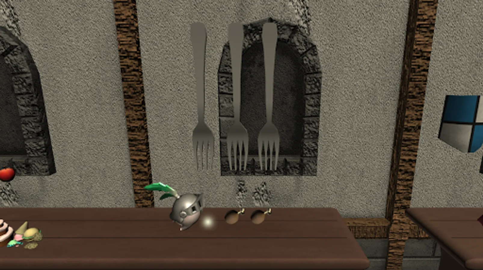 Watch out for forks, sticky syrup, and other tricks and traps. Collect bits of cheese, meat, and apples to increase your score as you make your way across the castle banquet!