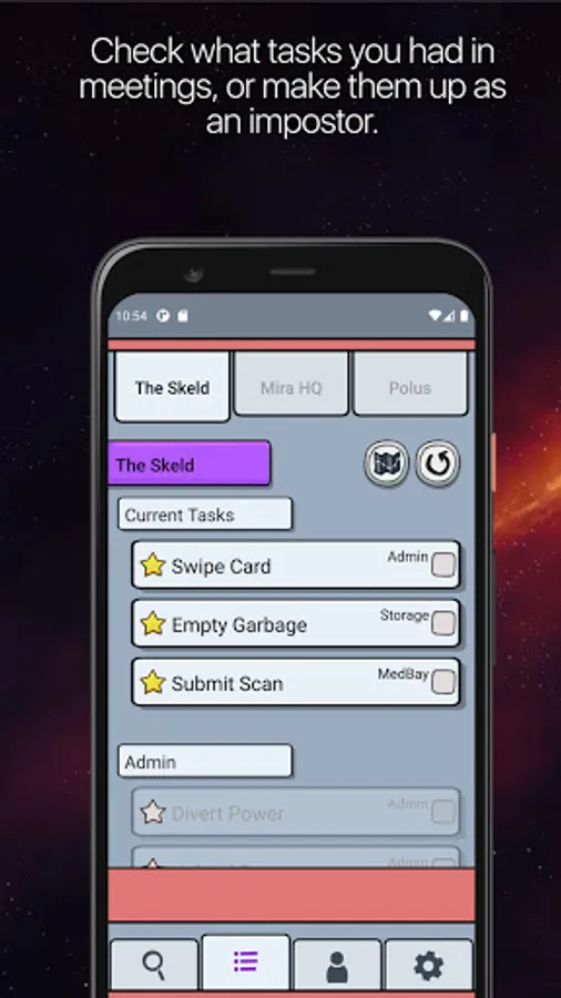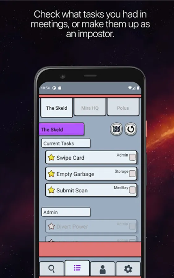 With the detective among us app, you will be able to keep track of all the places you have been to, all the possible incidents you have seen, and all the tasks you have done as a crewmate, or you can use the handy list to fake it as an impostor.