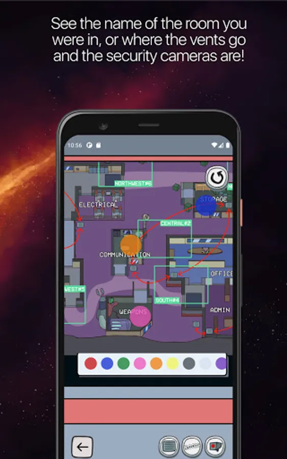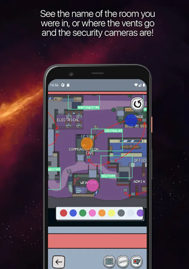 The app will let you have a full overview of each of the maps in addition to the specific names of each room, routes of the vents and where those security cameras are. In addition to that, you can also drag and drop color markers to keep track of the places you want to remember. So, forgetting where you were or where you have seen someone is out of the question.