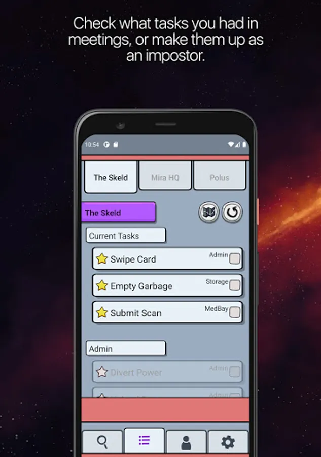 As a virtual note-taking tool, Detective among us can also be used as the perfect guide companion app. You can mark any color as sus, safe, imposter, or dead for better mindfulness of the game. In addition to that, you can also star the task that you have and use the checkbox when you have finished doing them, so you will always know what is left.
