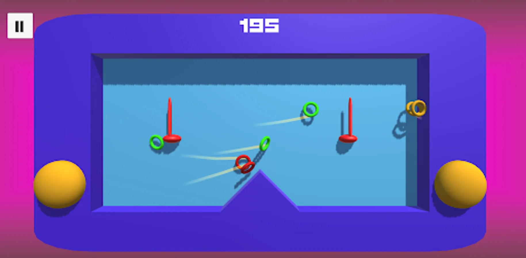 This is a game like the IRL ring tossing game toys. Get all the rings on the pin(s), in a given time, to complete a level. Different ring colors will have different points and abilities.