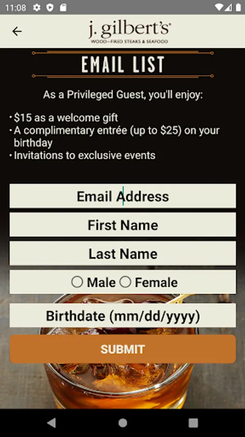 Other app feature include having your receipt emailed to you and the ability to sign up for our email list for exclusive offers.