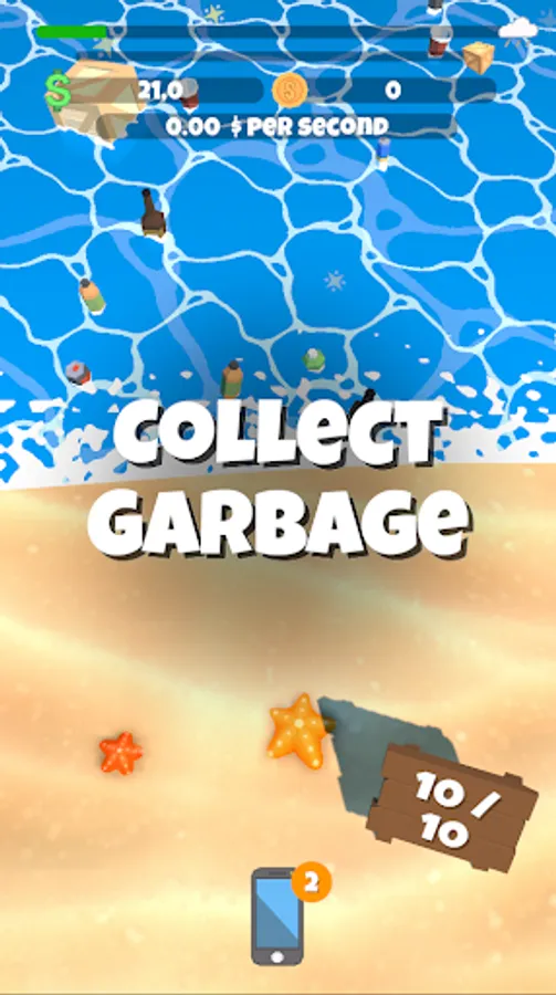 In this game you can collect trash that is lying on your beach. This will give you money. You can use this money for upgrades and collect more and more trash. Furthermore, you can research in the laboratory and collect artifacts.