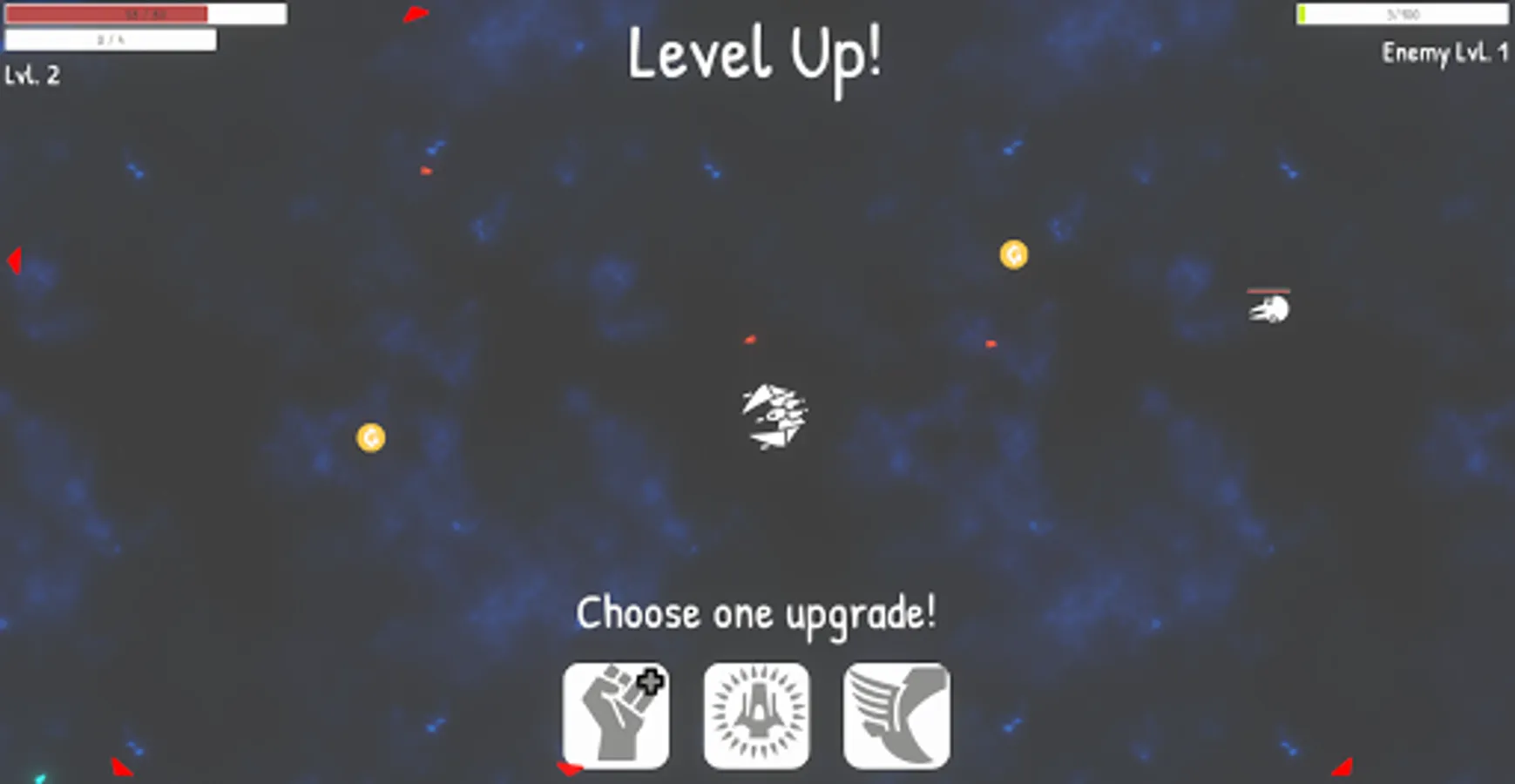 You'll have to defeat an infinite number of enemy spaceships. These spaceships come in waves and get stronger the more you shoot them down. Your objective is to survive as long as possible and collect coins for further improvements for your ship.