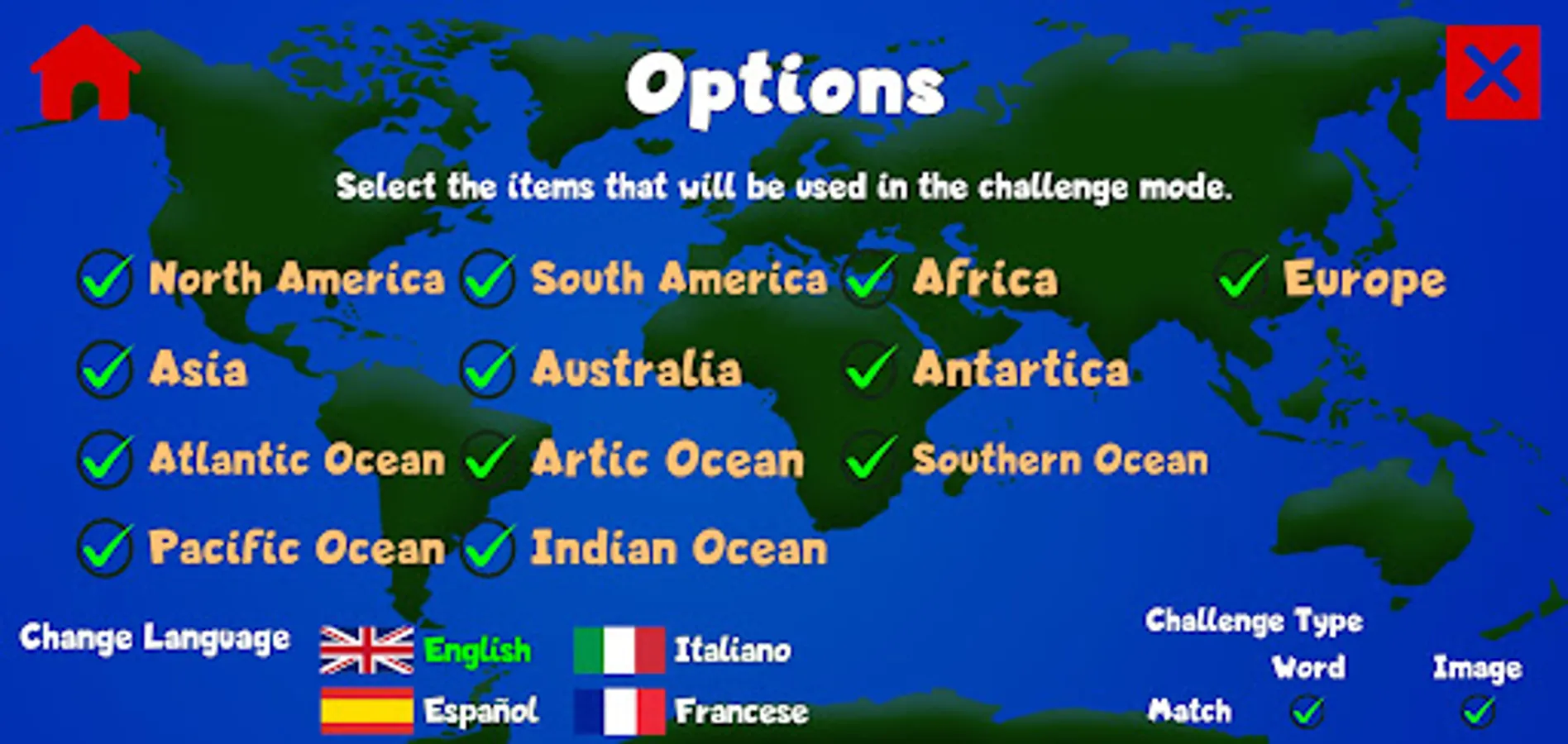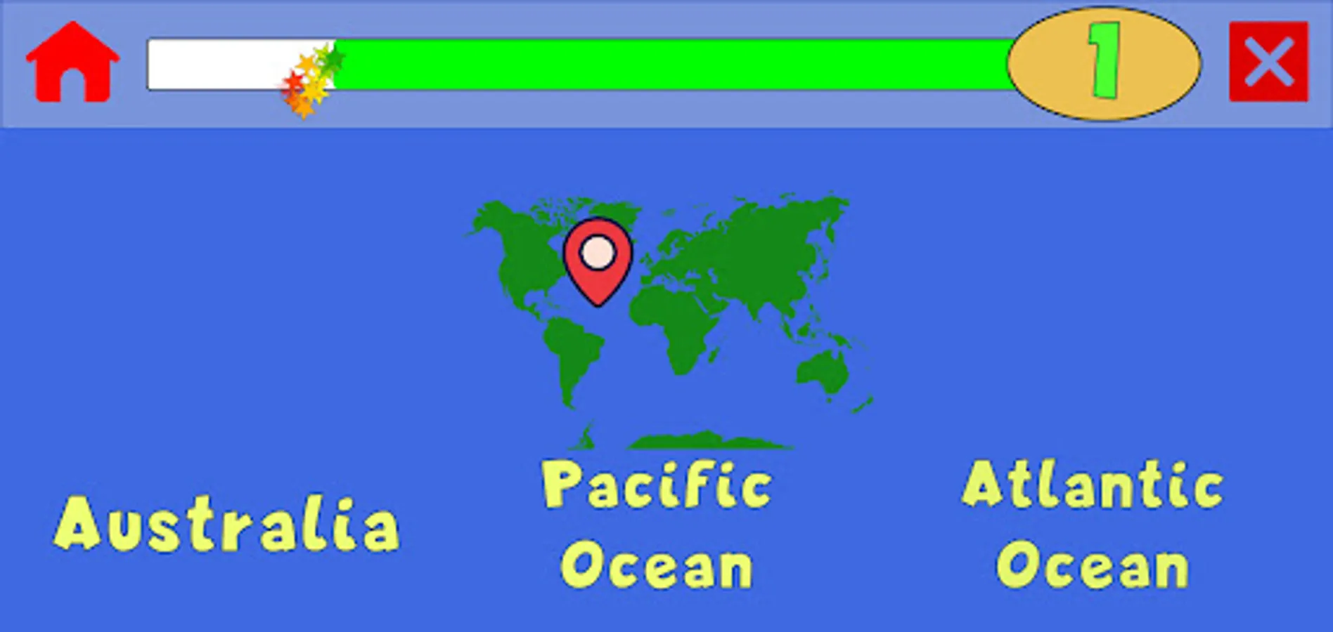 -Learn while having fun. Move the continents around to snap them where they belong.