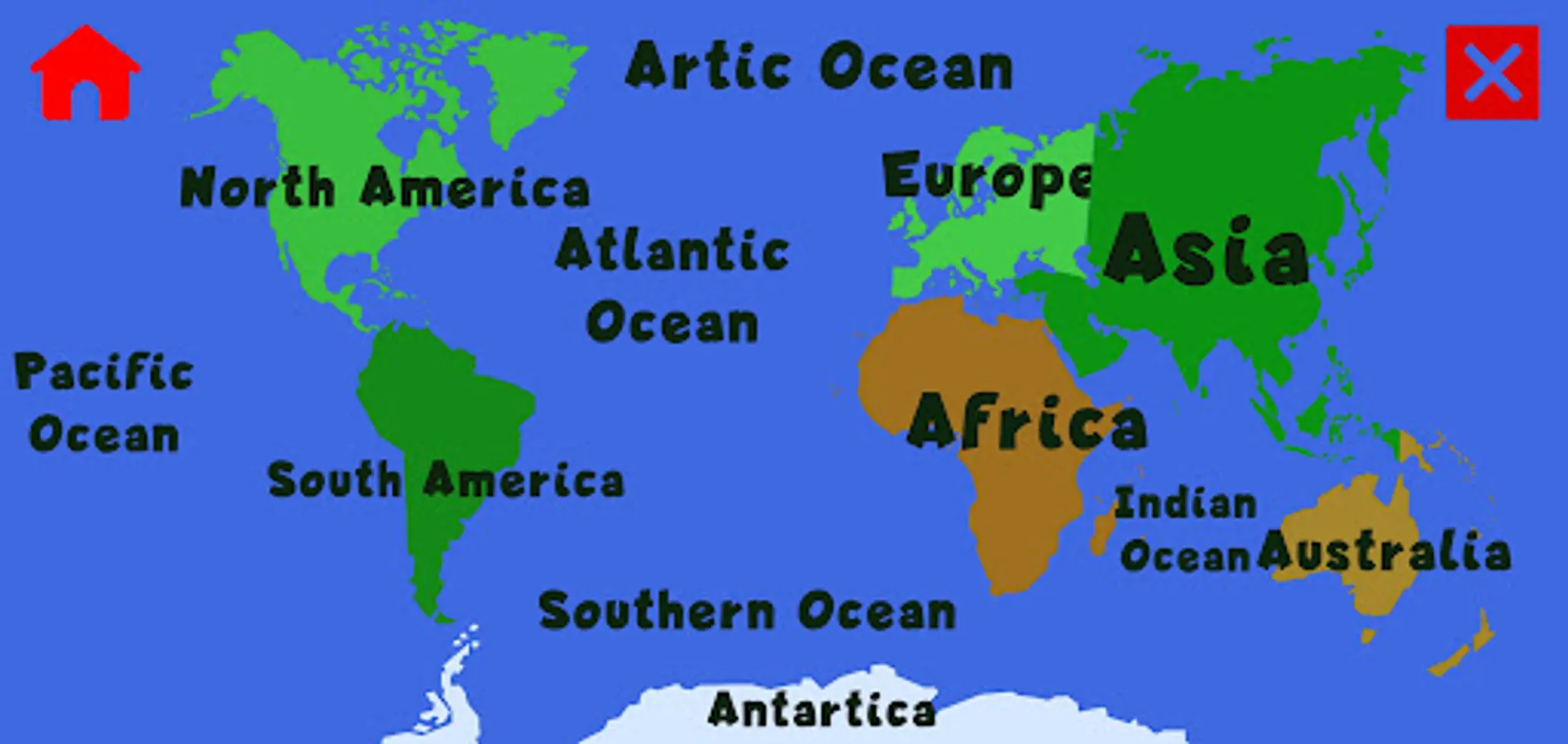 With Learn: World Map your kid will be able to learn about the continents and oceans, spelling, and pronunciation.