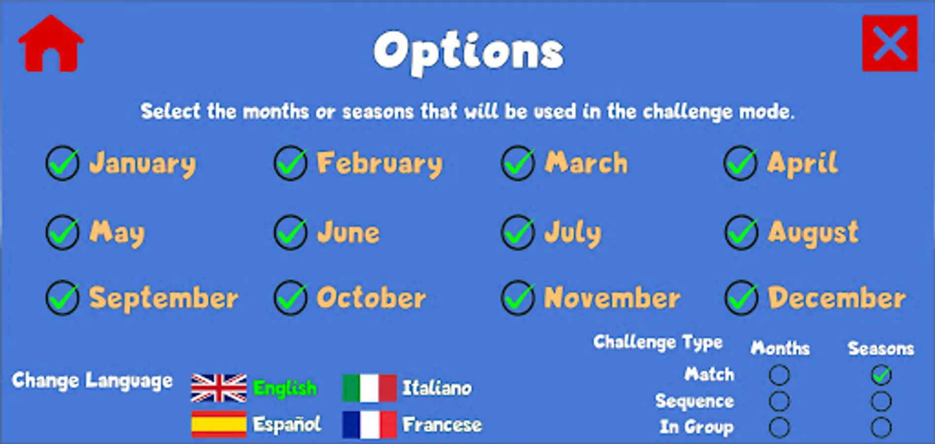 Touch the seasons and months to hear the pronunciation