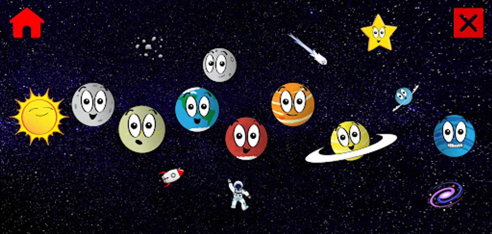 -Learn while having fun. Create your own space scene by moving the different objects around.