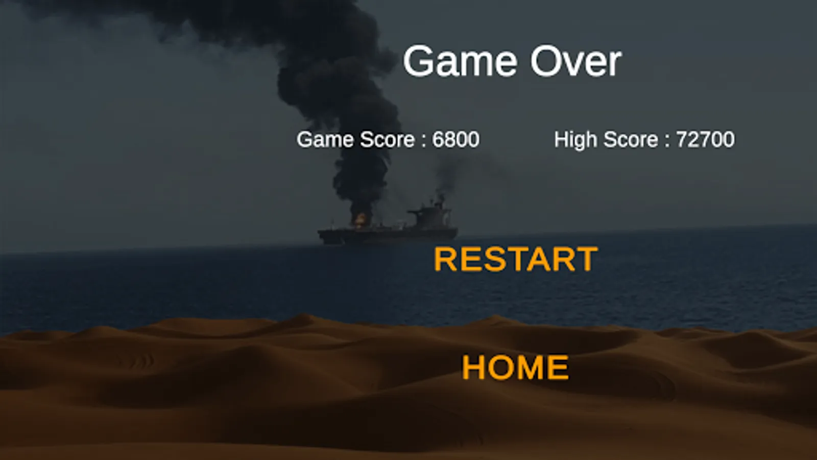 High Quality 3D Graphics with Arabian Gulf desert, sand and Sea with horrible and fighter ships and huge oil tankers.