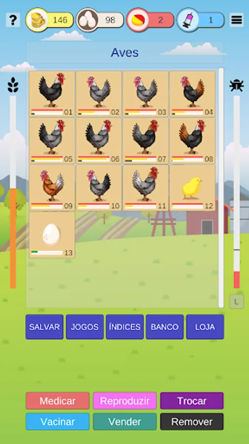 As the name says, this is a rooster game and it's a chicken game too. It is a game of resource management and genetic selection in a bird breeding.