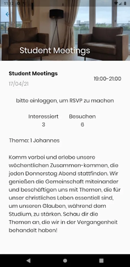 Wir sind eine kollektive Gruppe von Studenten mit verschiedenen Hintergründen von Universitäten in München, die den Herrn Jesus Christus lieben und an dem gemeinsamen christlichen Glauben festhalten. Wir bemühen uns, die Bibel kennenzulernen, Gemeinschaft zu genießen und gemeinsam Ausflüge zu machen. Ob Sie ein neuer Gläubiger, ein fortlaufend Suchender oder einfach neugierig sind, wir heißen Sie willkommen!