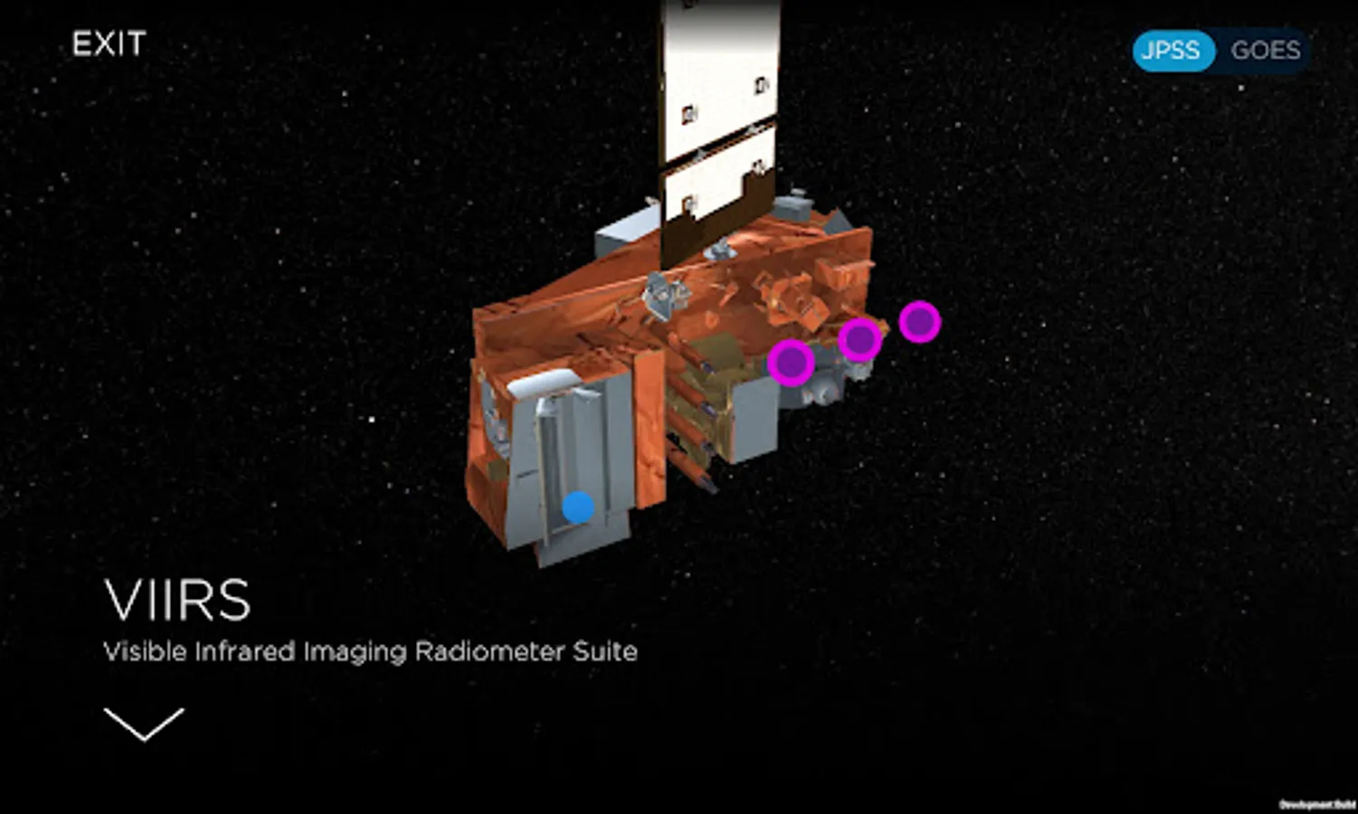 Learn about the satellites that monitor extreme weather and climate change in this immersive AR app. We'll challenge you to complete a series of missions, which will start with an interactive journey into space where you’ll see the satellites orbiting Earth and view all of their instruments up close. You’ll learn how the satellite instruments work, how they transmit data from space to a system of ground stations on Earth and end up in your weather forecast. You’ll learn about the electromagnetic spectrum and how the satellites see. And you’ll explore the powerful weather events and dazzling weather phenomena that they observe across our planet.