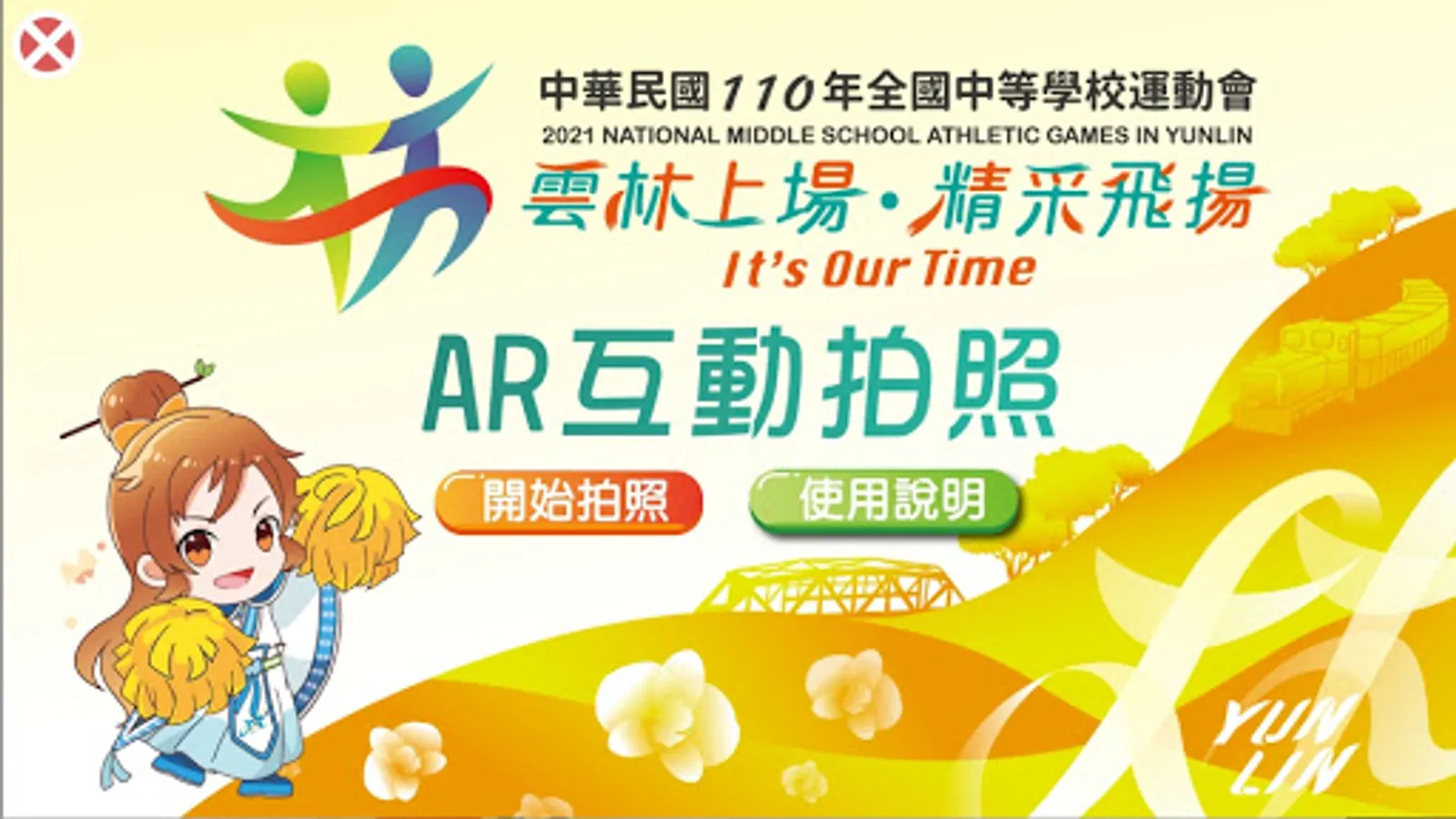 Open the APP to enter the main screen, click "Start taking pictures" and the scanning screen will appear. Look for the conference logo at the 110th National Secondary School Games held in Yunlin. After scanning the LOGO, you will see the conference mascot-Yunlin Boy, Lanxin Sister, you can interact with them, and you can take pictures with them after interaction! When taking pictures, you can adjust the position and size of the mascot yourself to take the most satisfying group photo!