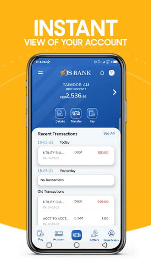 Access your JS Bank account instantly, make payments on-the-go and transfer funds to anyone safely and securely with your device.
