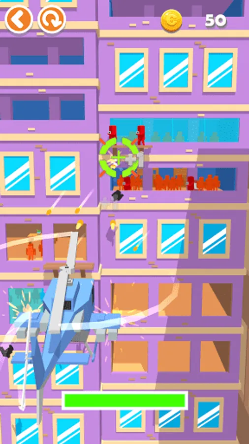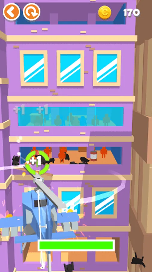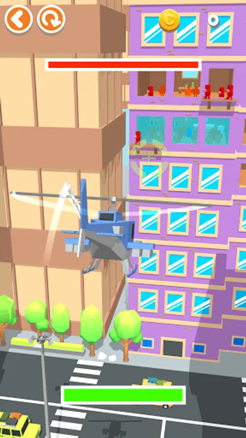 Rescue the innocent people on each floor of the building with your cool helicopter.