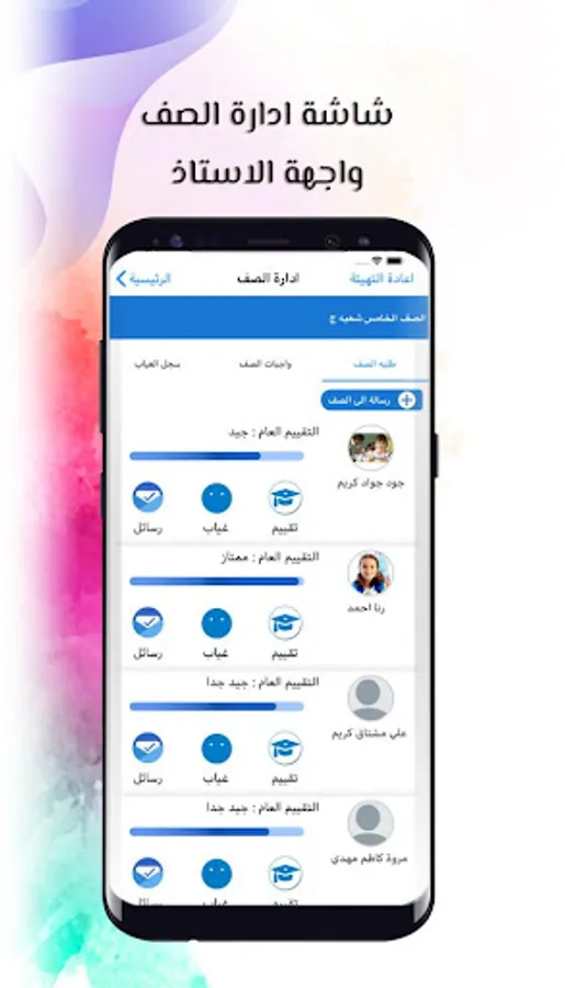 حزمة تطبيقات الهاتف الذكي للكادر التدريسي تمكن كل محاضر ضمن مؤسستك التعليمية من الوصول الى حسابات الطلبه والصفوف المسندة اليه وسرعة ارسال الاشعارت ورسائل البريد الالكتروني المباشرة عبر اجهزة الهاتف المحمول الى كل من اولياء الامور والطلبه ايضا على حد سواء.