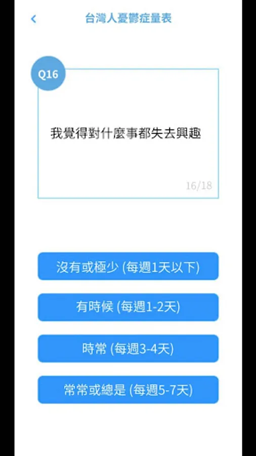 ✽提醒您,本測驗不是診斷,有憂鬱症傾向請尋求專業協助!