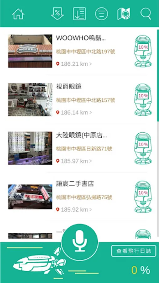 2. 店家資訊將可選擇距離遠近、分類等來查看店家,或透過語音搜尋找店家,同時也能用地圖模式來查看店家。