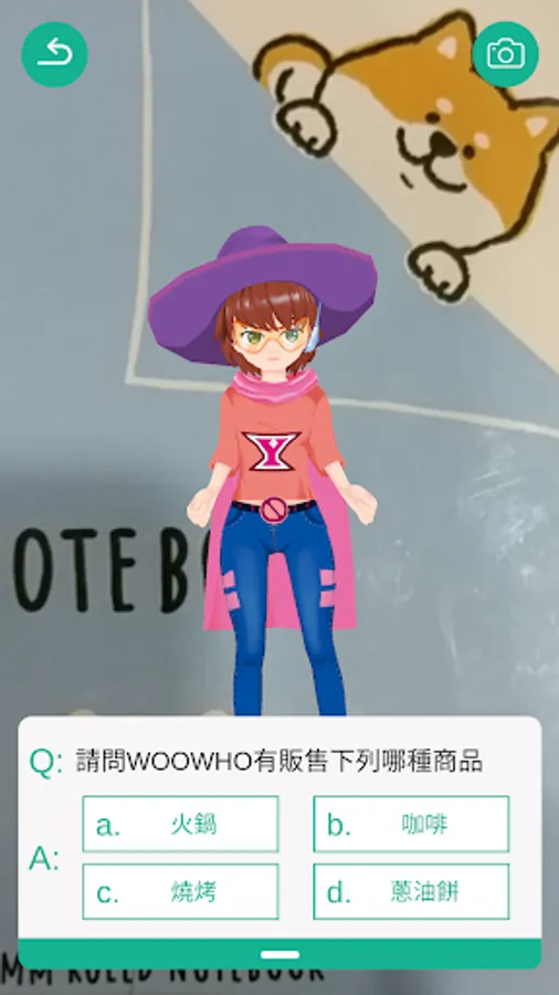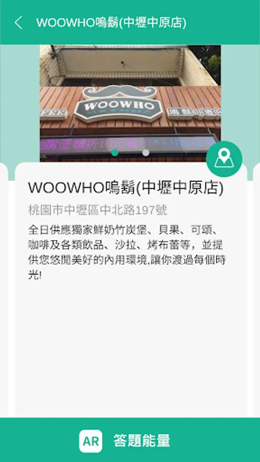 3. 行動裝置會偵測是否到達店家位置後,將出現擴增實境(AR)人物進行答題,完成題目正解才能蒐集能量,完成任務。