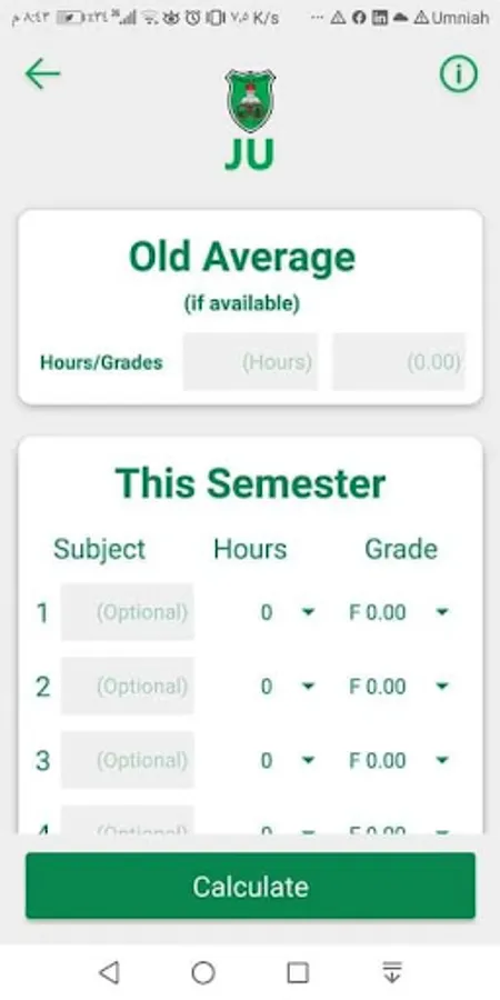 You can calculate the average of the semester subjects and also you can calculate the cumulative average by entering the number of hours completed and the university average and then entering the semester rate and the material completed in it.