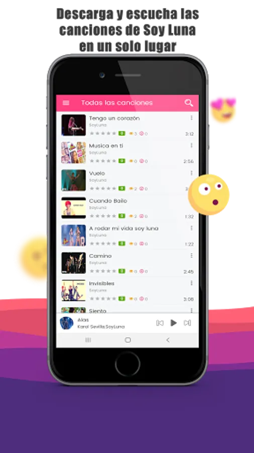 Can you imagine having all the actions of your favorite series soy luna in one place? ... This is your application all the songs of all the seasons of soy luna and you can also download them to be able to listen to them without internet.