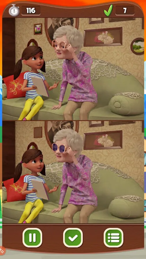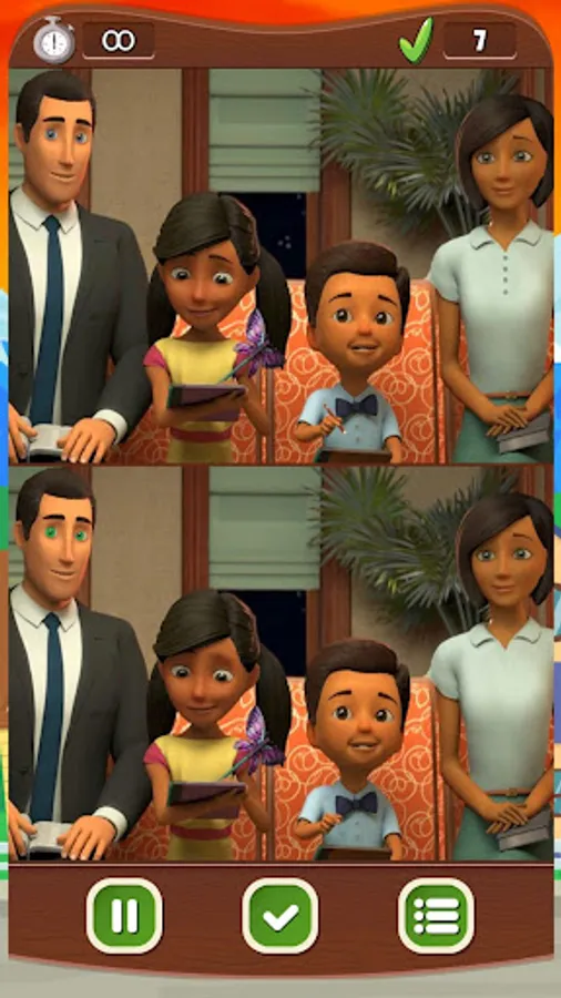 The game has two images, the first one being the correct one and the bottom one it's where the 7 differences are found. Just analyze the image and click on the difference. You have 120 seconds to find the 7 errors, but you can disable this function.