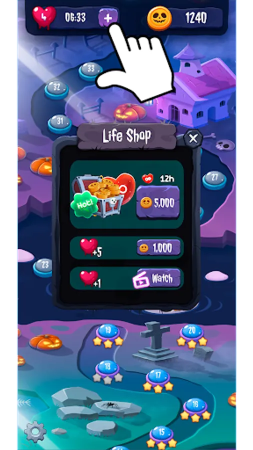 Tip: Visit the 'Life Shop' (on the top left corner '+' plus sign) to earn and extend your life span