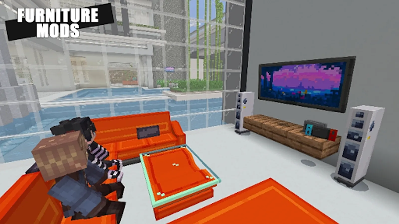 Furniture Mod for Minecraft Pocket Edition is created to provide you with decoration for interior and exterior in world of craft and items for you. You can design houses and rooms with this addon!