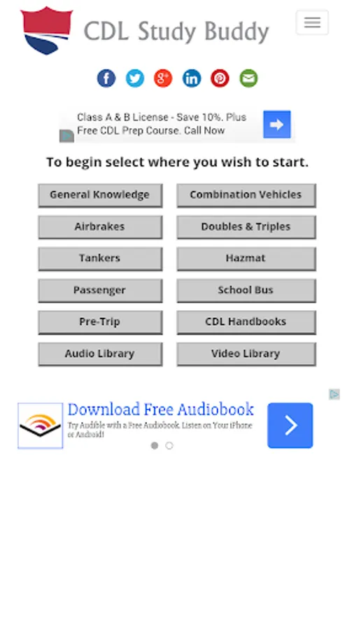 In addition to over 1,000 test questions, CDL Study Buddy also provides every CDL handbook throughout the United States in pdf, as well the the CDL handbook in audio so you can listen to it on the go!! And then there is the instructional videos that help guide you through every step of the pretrip inspection, air brake inspection, and even a DOT roadside inspection.