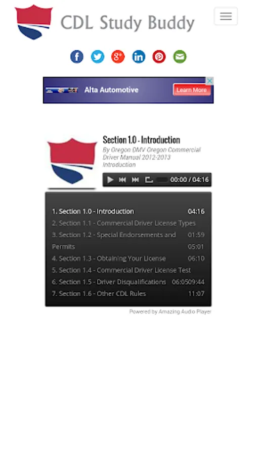 In case your device has trouble with this web based app please try our web-based app at http://m.cdlstudybuddy.com