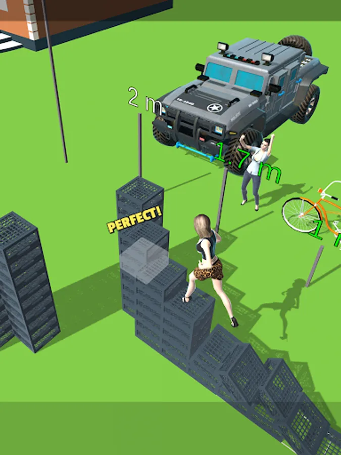 Tap at the right moment to build a stack of crates and run over it.