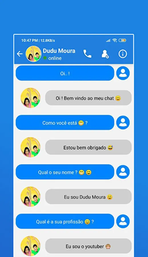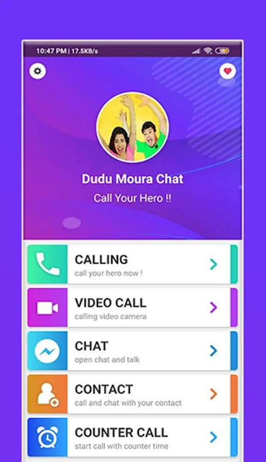 Today, the wallpaper call from Dudu Moura and carol moura is coming with many features, how can you simulate a fake call with the famous person you like and your idol, so here in Dudu Moura call the fake call, and you he also has a fake chat and also receives an interesting video call from Dudu Moura call, and there is also a contact section where you can also get in touch with fake calls from other famous personalities; they are related to the Dudu Moura call app.