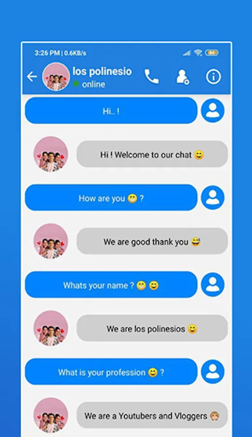 Los polinesios juego :call you : Fake call and video call application to accompany your days in your free time when you feel lonelyand boring then entertain yourself with fake calls from your idol. this application to simulation a fake chat messenger with a fake call and video call, we add option to start live with your Hero, to look a real chat messenger live. all this just for prank your friends or your family to make a fake chat with favorite Los polinesios Member to be a real chat, you have many option to connect with Rafa Polinesio Call and Karen Polinesia calling voice, Lesslie Polinesio live chat or PlaticaPolinesia calling video.