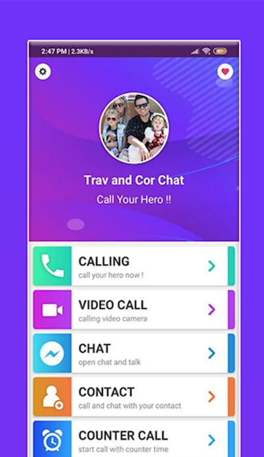 With Trav and Cor you can get a fake call in anytime, and anywhere, just open the Trav and Cor app, and start to call Trav and Cor or chat with Trav and Cor, and also have a video call with Trav and Cor, install it now and start having cool time with you hero Trav and Cor