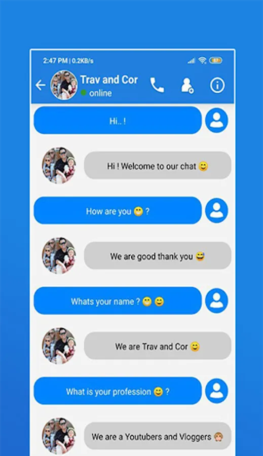 Trav and Cor Fake Call, Today you can prank your friends and joke with them, Connect to Trav and Cor fake Call by clicking on the fake chat button and have fun with your friends.
