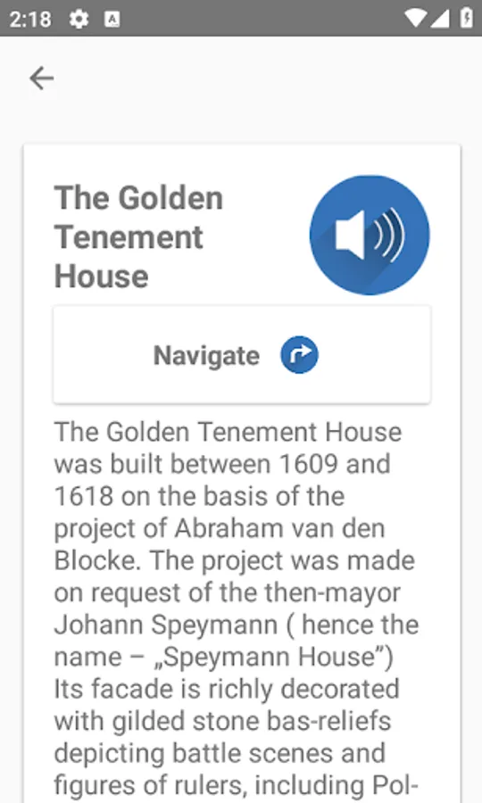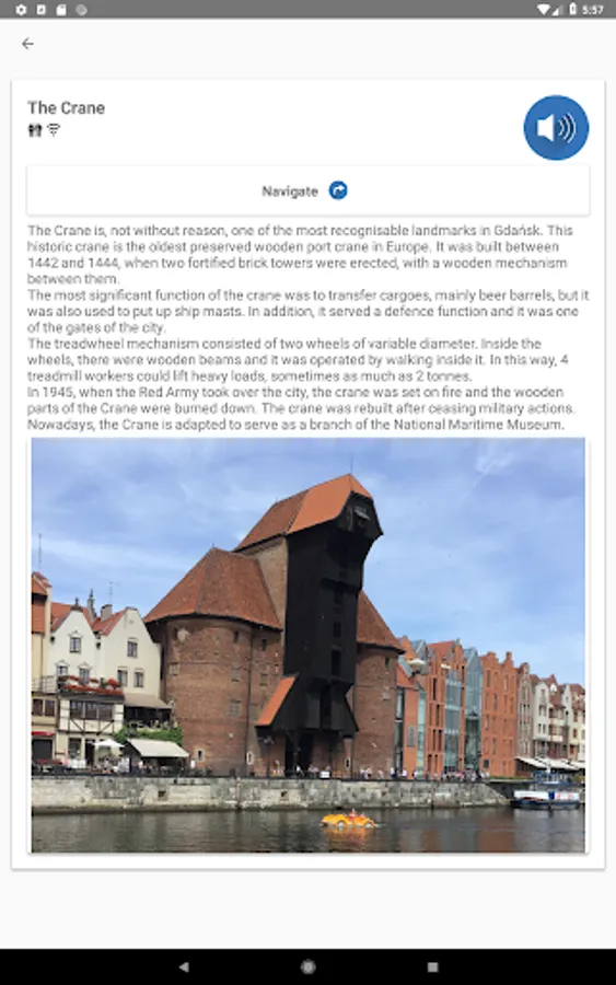 Thanks to complete sightseeing routes, tours and the map of attractions, the app allows you to spend time effectively. It makes you able to plan sightseeing, as well as sunbathing! Gdansk is not only the Baltic sea and the beaches - it's a city rife with sights and tourist attractions. Neptune's Fountain and The Crane are just tip of the iceberg - there are many places that are not as well known as them, but not less interesting! You can find them using this audioguide. Even hotels tend to be monumental in Gdansk! You won't miss a single monument this time.