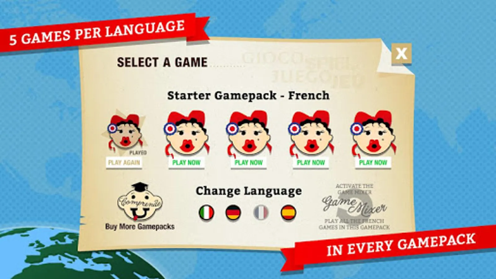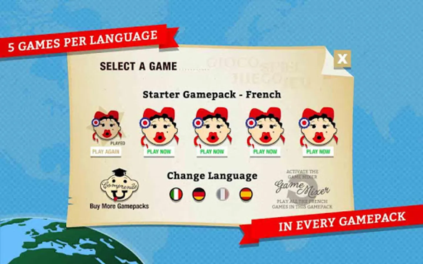 —The Game Mixer activation when you complete a gamepack, mixing up all the games in a language and adding another challenge