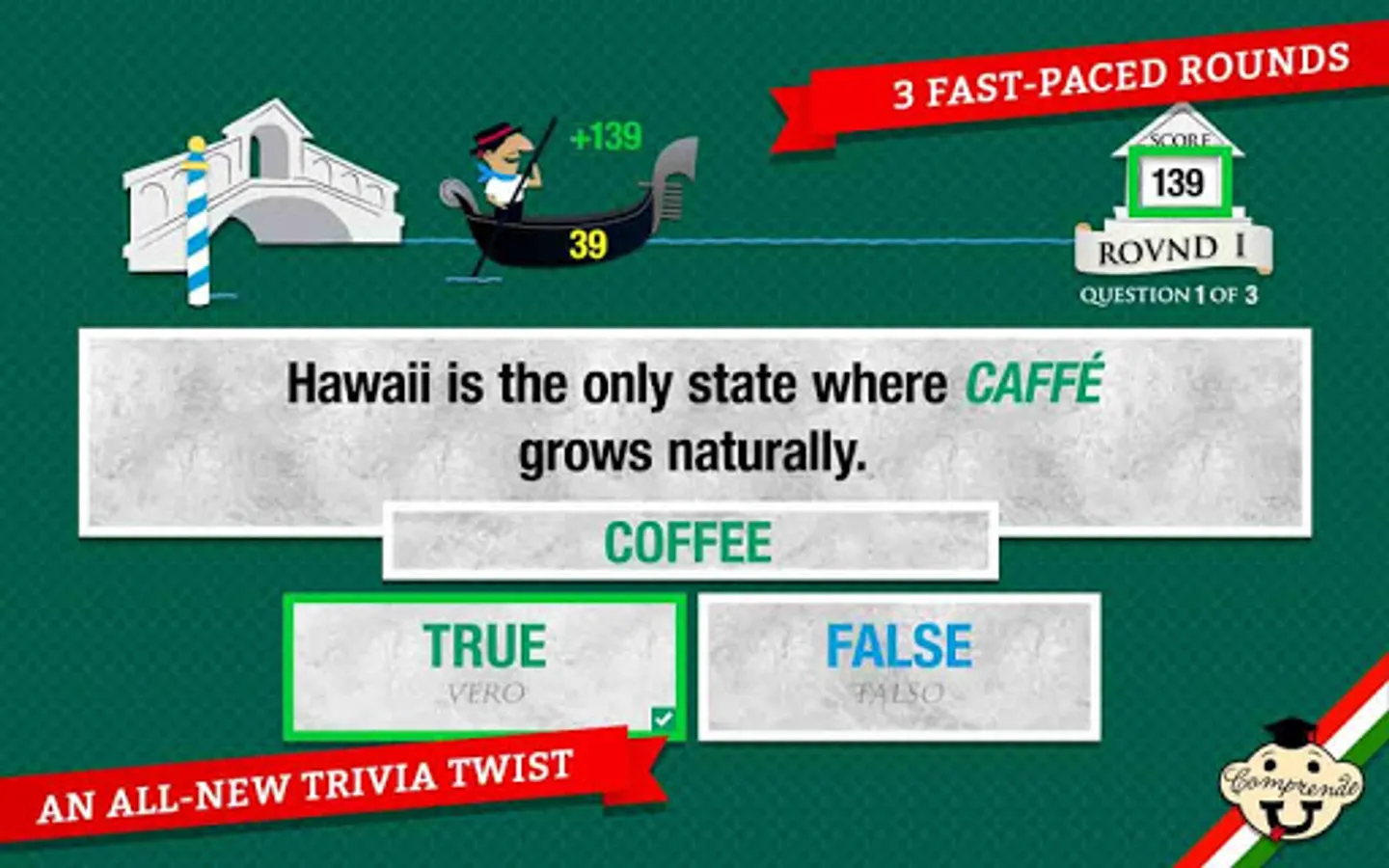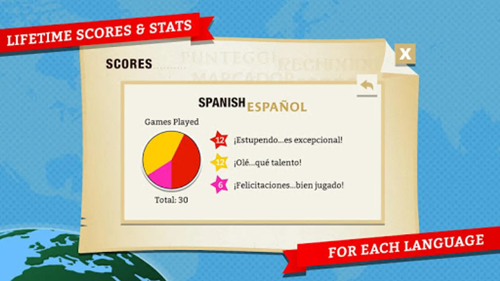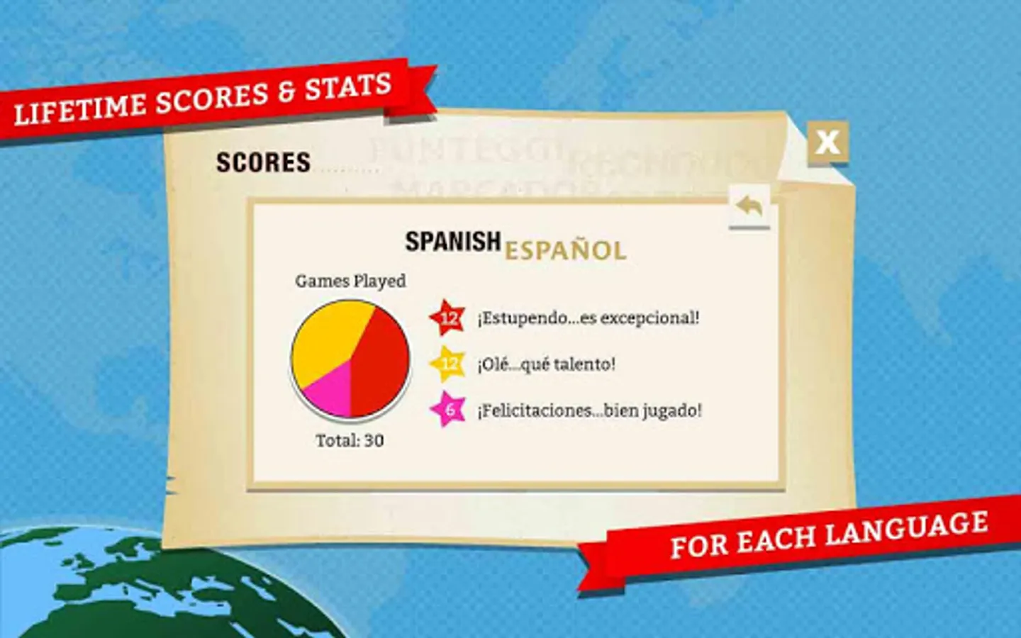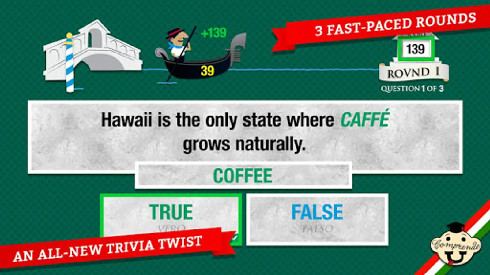 Play the all-new twist on trivia with an Old World flair - entertain yourself with French, German, Italian or Spanish.