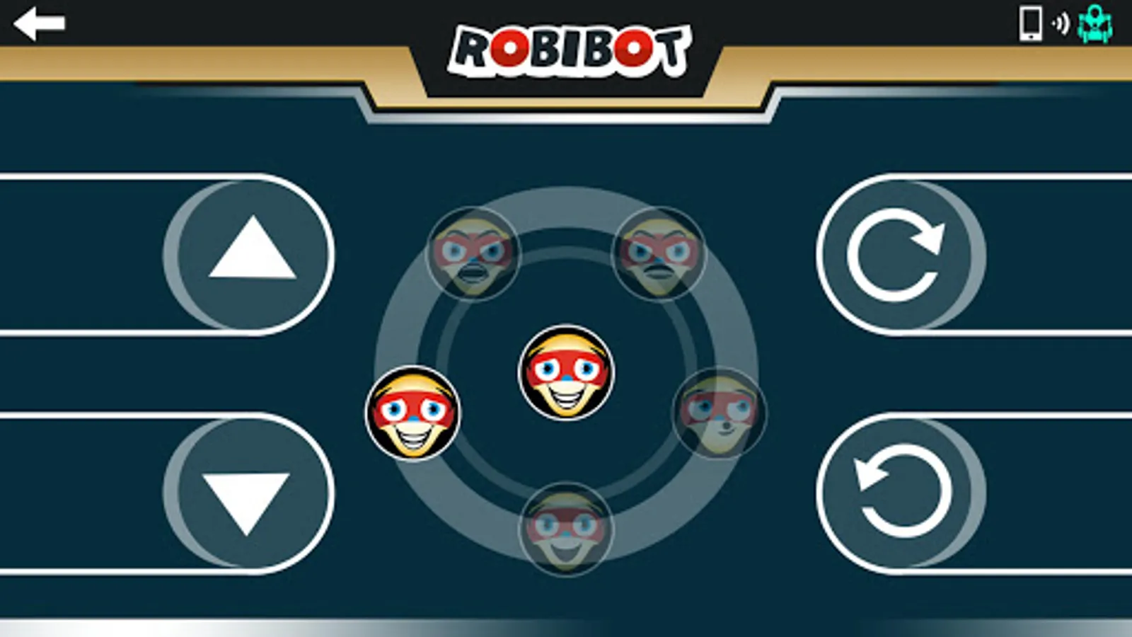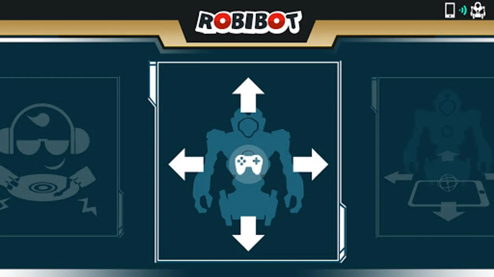 2) G-Sensor Control – Hold the phone / tablet side way. The screen with the ROBIBOT logo is the front.