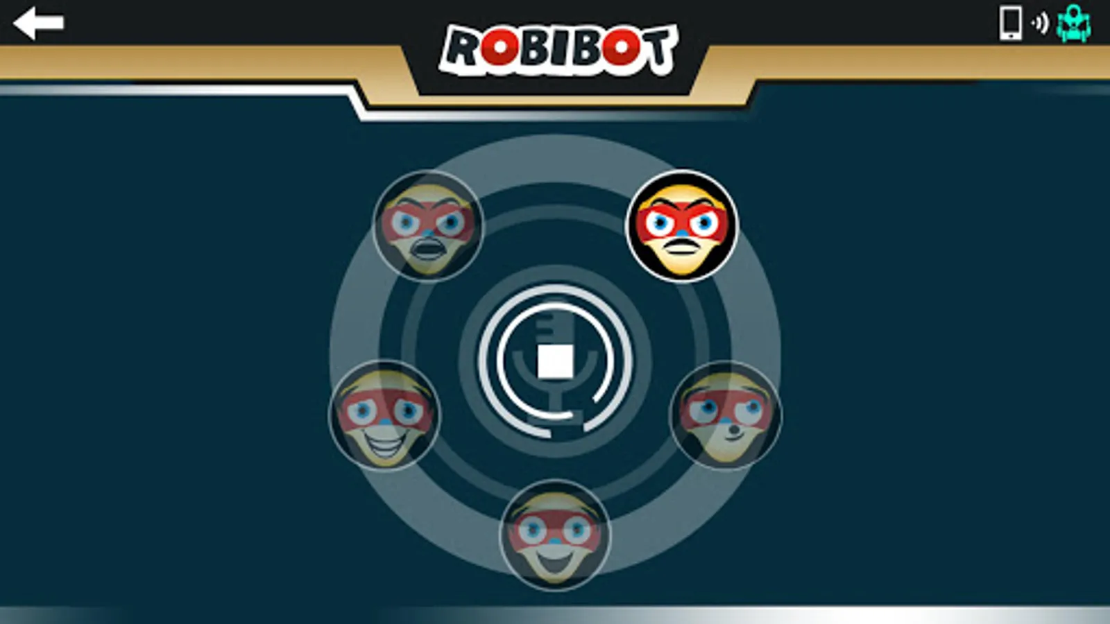 press Microphone icon and speak. Press the Play icon and ROBIBOT say the message. Press the trash can icon