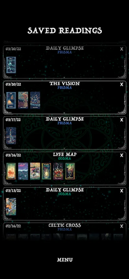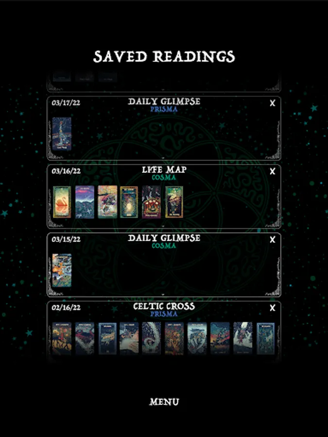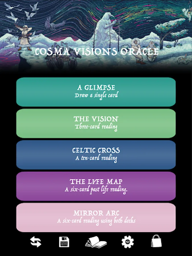Dive into the world of divination featuring the iconic Prisma Visions Tarot and Cosma Visions Oracle by James R. Eads. Explore a variety of readings, keep a log of your saved readings and gain access to a comprehensive digital guidebook of both decks. The Pocket Visions App includes: