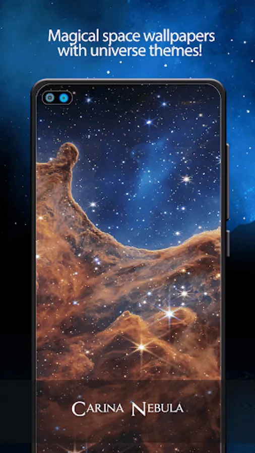 We bring beautiful universe themes and wallpapers live for your home screens! Experience phone customization at a whole another level! You download space wallpapers free, and we will take care of the user experience and excellent quality backgrounds! Check out our newest James Webb photos of outer space, brightest stars, and distant galaxies! Discover the secrets of outer space and enjoy looking at the space wallpapers HD on your mobile phone. Pick the Carina Nebula, Stephan’s Quintet, Southern Ring Nebula, First Deep Field, or a Jupiter photo for your new universe background!