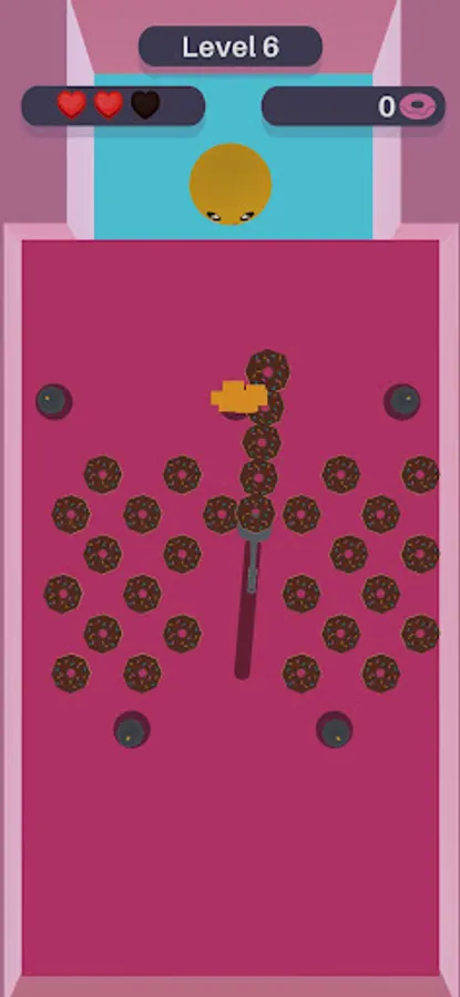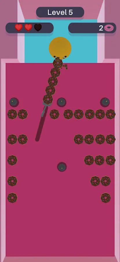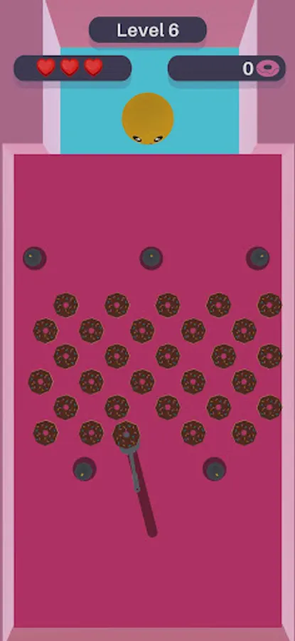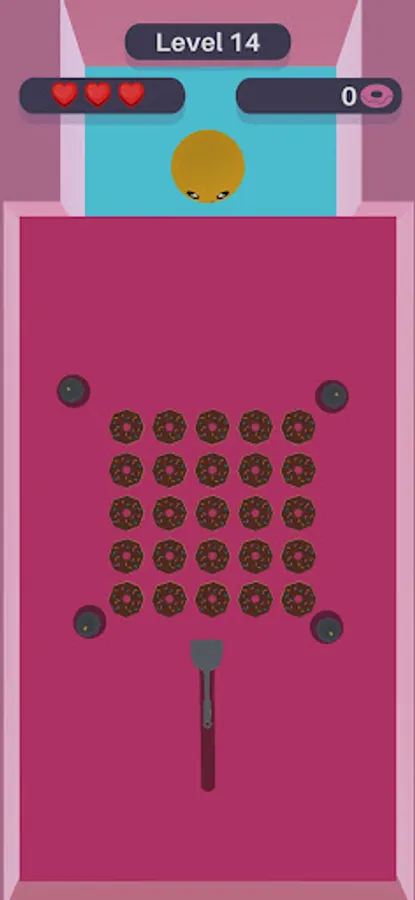Gooey Gourme is a fast-paced mobile game where you control a spatula, collect food, and dodge bombs in various levels. Feed the slime by collecting donuts and achieve level victory by collecting all donuts, but avoid crashing into bombs or lose a life. Game over with 3 lost lives. Challenge yourself with increasingly difficult levels and test your dexterity.