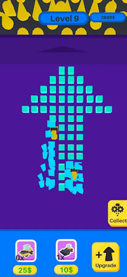 Block Breaker is a unique and exciting idle game where you use bulldozers and Harvesters to break blocks and earn money. As you progress through the levels, the blocks will take on increasingly creative shapes and patterns, challenging you to find the best strategy to clear them all.