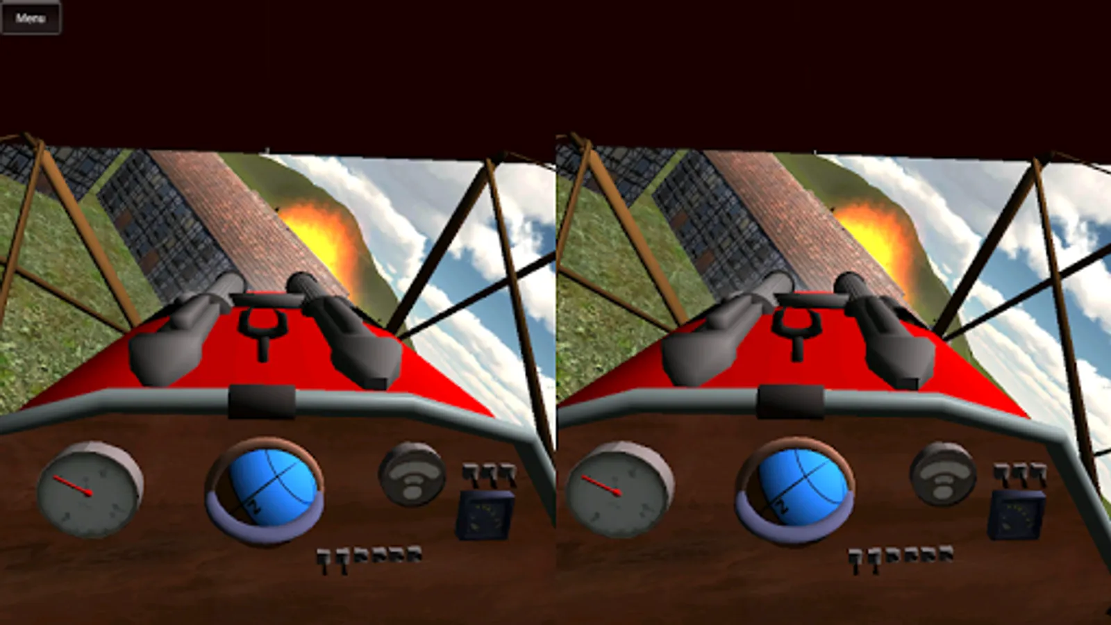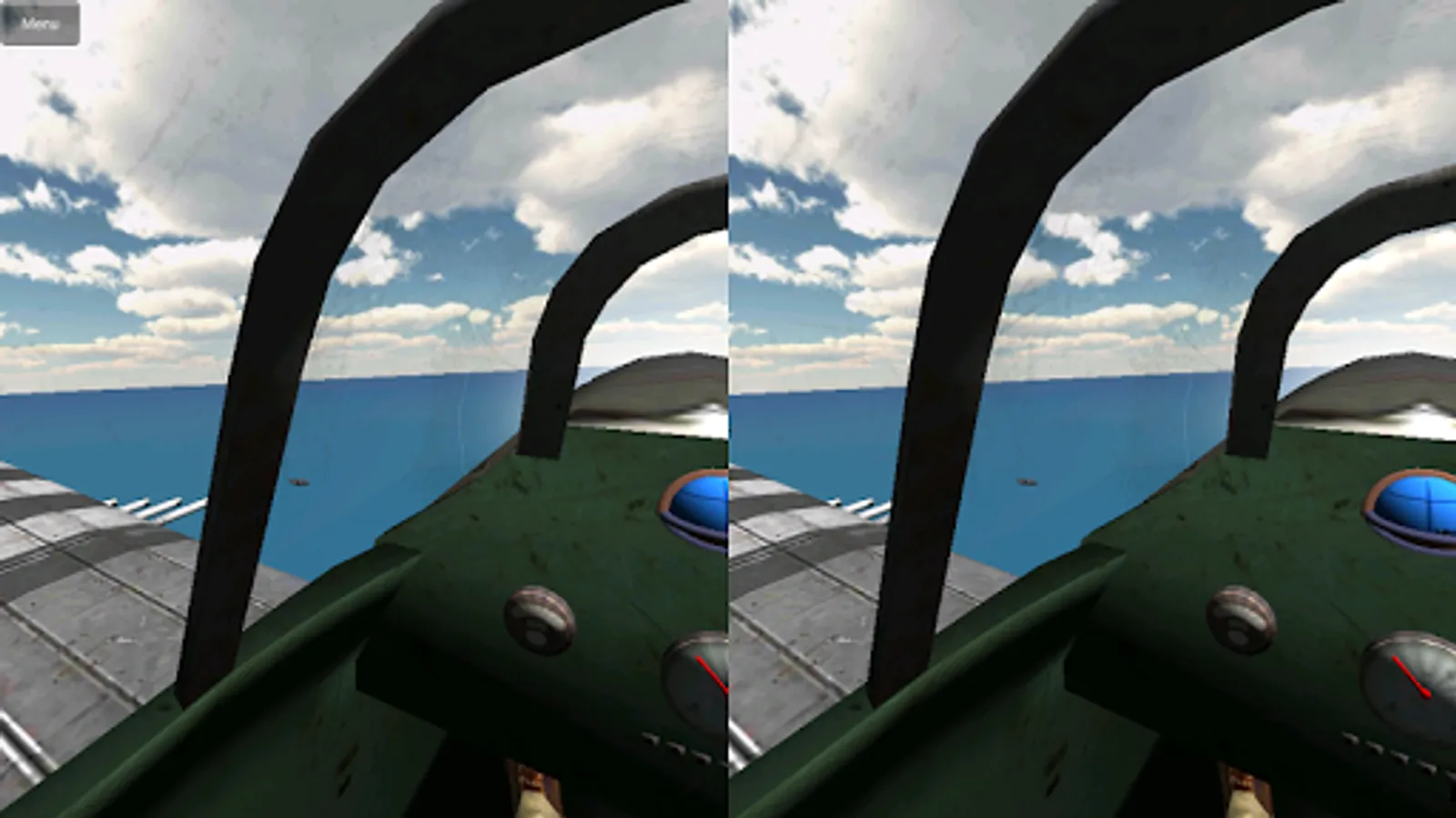 This flight simulator is especially made for 3D-Headsets like the Cardboard, Durovis Dive (http://www.durovis.com) and Refugio 3D (http://www.refugio3d.net), VReye GO (http://vrelia.com/vreyego/),