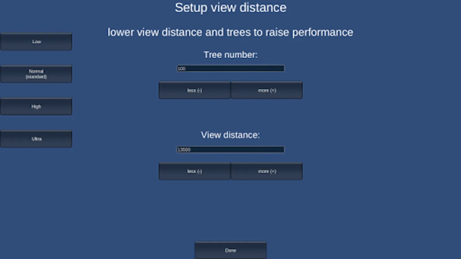 Manipulate view distance to get the best performance for your device.
