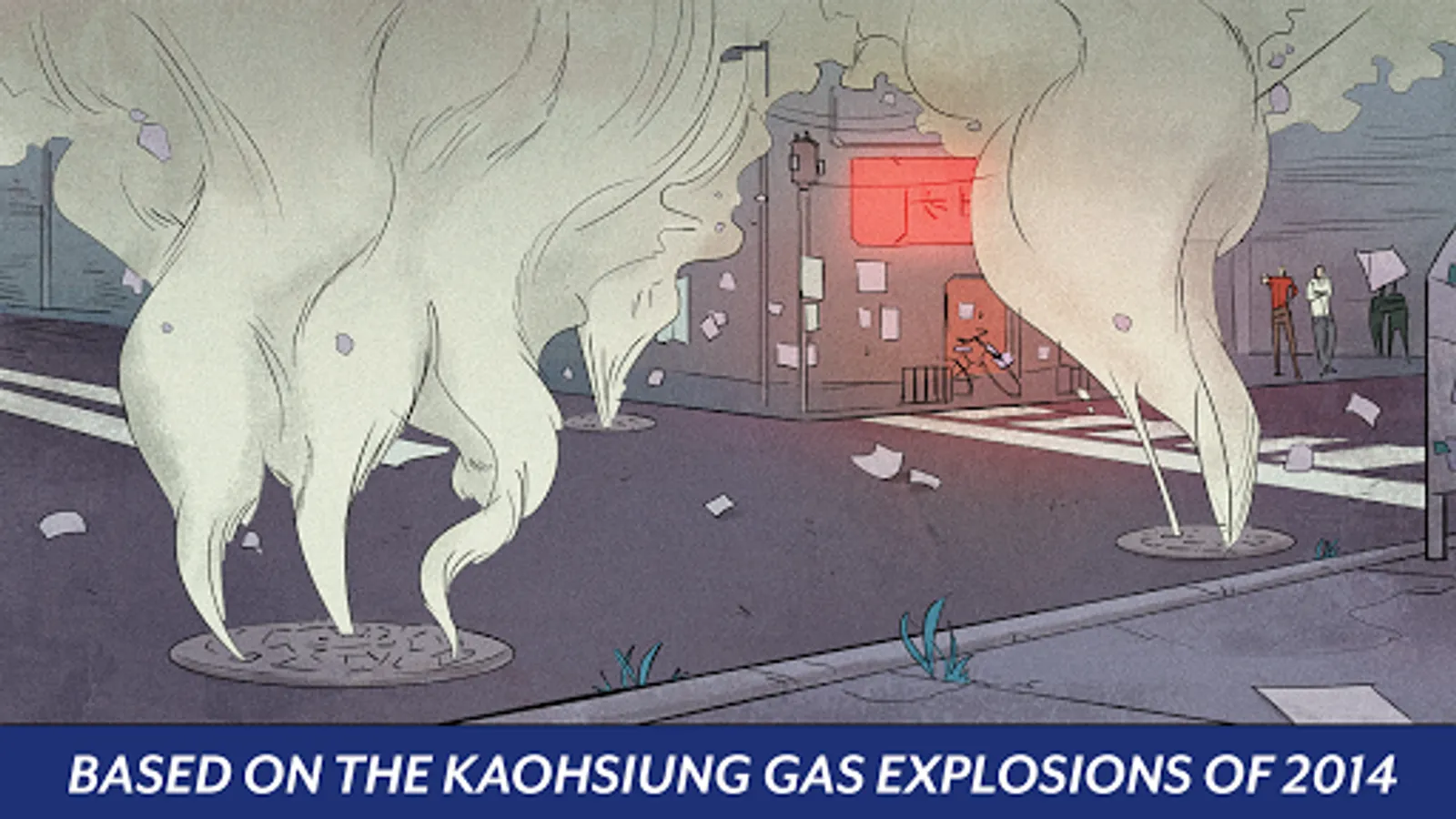 • A historical fiction graphic novel based on the true events of the 2014 Kaohsiung City gas explosions with full color, interactive panels.