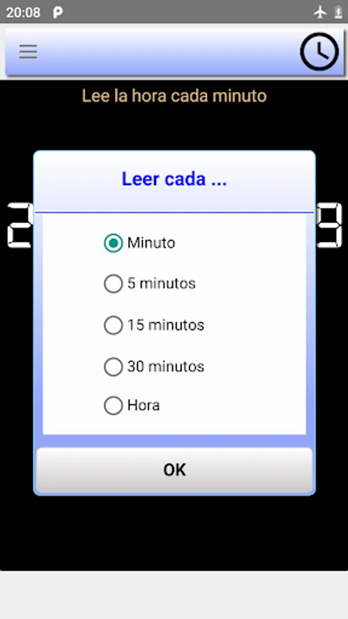 Are you looking for an app that allows you to hear the time aloud on your Android device? Download our "Time Loud" app now! Specially designed for people with reduced vision, you can adjust the frequency of reading the time to every minute, every 5, 15, 30 or 60 minutes. And, with our text enlargement function, you can "tap" on the date or day to increase the size of the text and read it easily. Download "Read the time in Spanish" now and never miss the time on your Android device again!