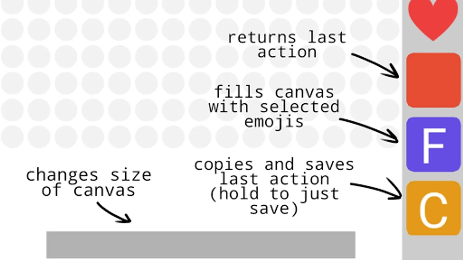 In this app you can draw a simple image consistion of emojis: emoji-circles and emoji-hearts.